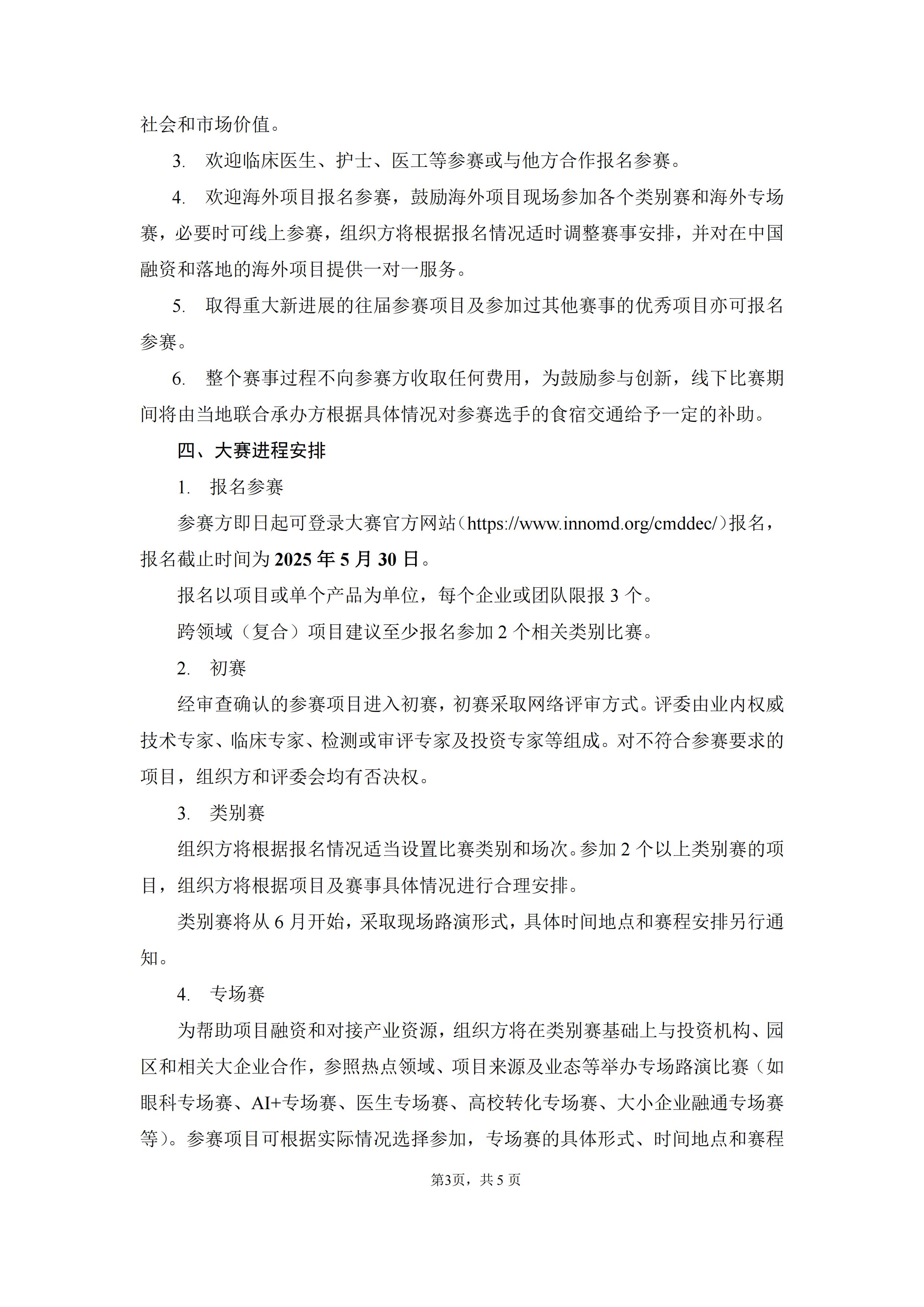 參賽方即日起可登錄大賽官方網站(醫療器械創新網網://kjdsbg.com/cmddec/)報名,報名截止時間為2025年5月30日。
