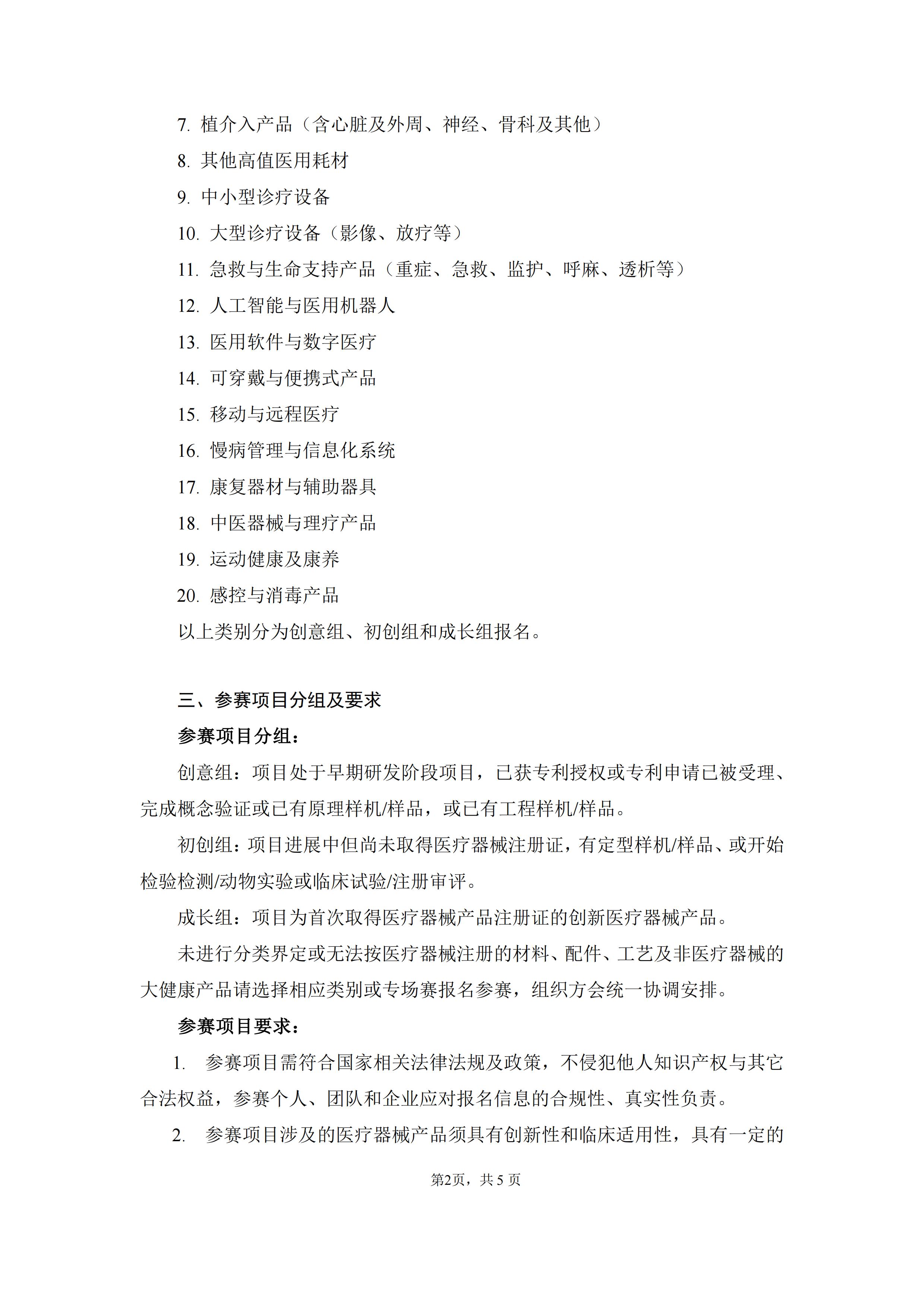 未進行分類界定或無法按醫療器械注冊的材料、配件、工藝及非醫療器械的大健康產品請選擇相應類別或專場賽報名參賽,組織方會統一協調安排 。